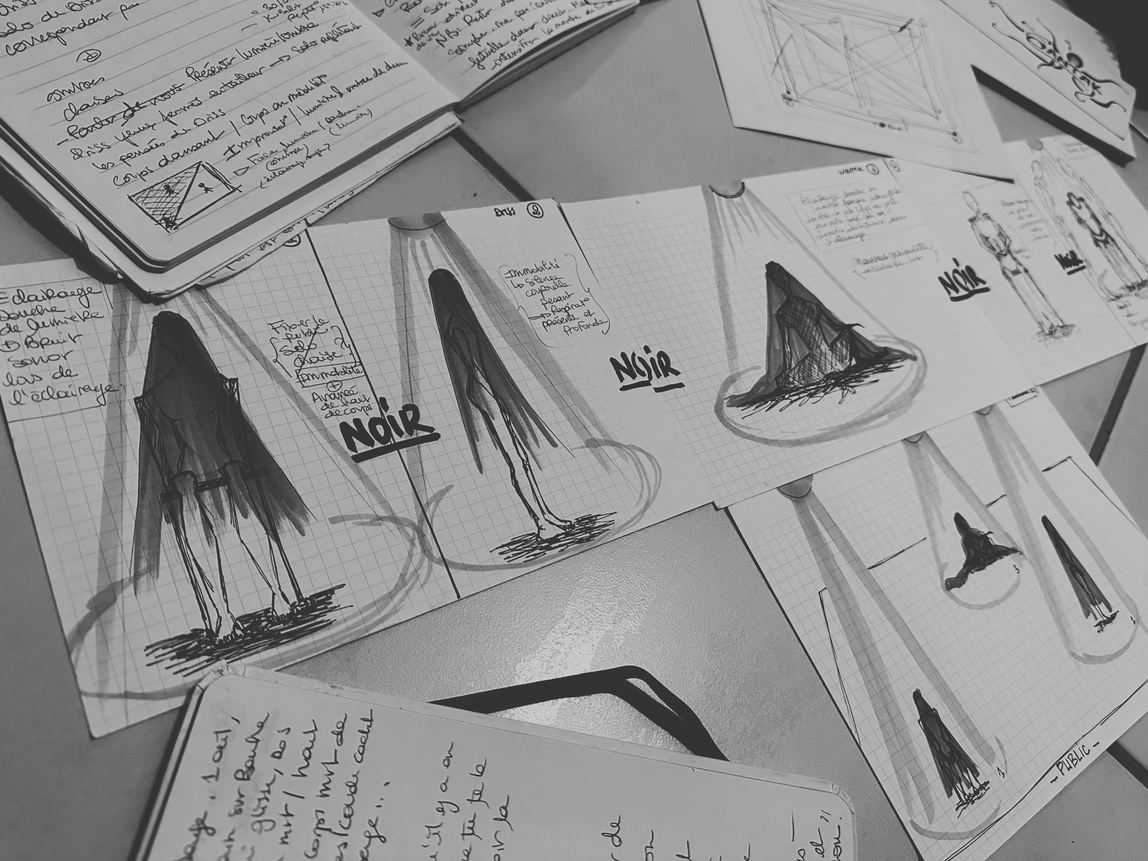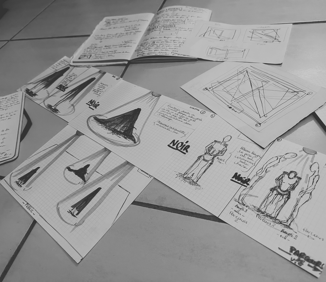 Enfin, en ce qui concerne la création lumière, la thématique portée sur les ombres nous permet d'expérimenter plusieurs effets jouant entre une atmosphère pesante et réconfortante à la fois. Nous aurons à nos côtés l'expertise de Jean-Pierre NEPOST qui saura nous guider dans la réalisation d'une scénographie unique.